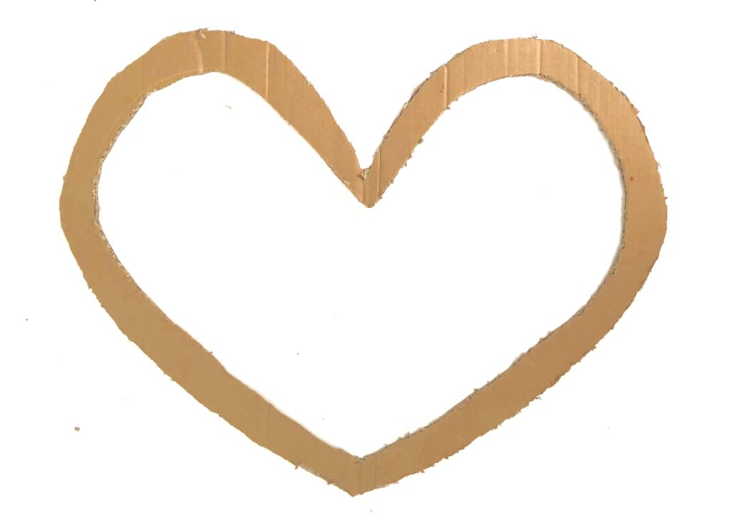 - Fold a large piece of cardboard in half and draw half of a heart.