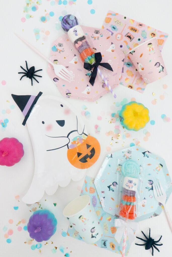 From adorable monster party hats to coordinating halloween felt baskets, the kids will be screaming with delight with all the fun details. And the good news is: you can opt for a fresh bold eye-catching color palette rather than the traditional black and orange.