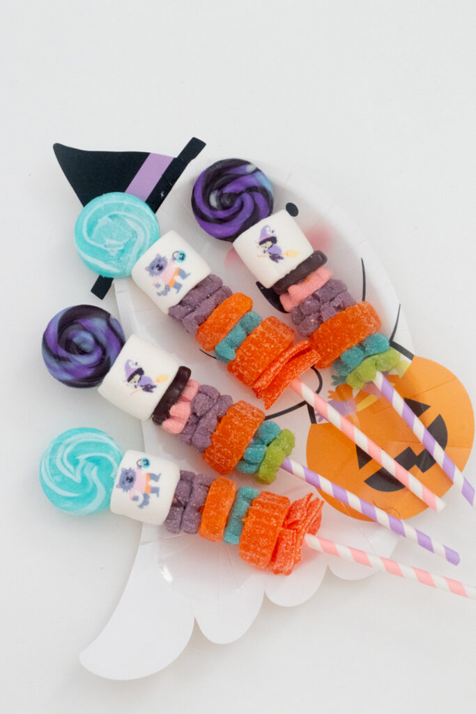 Impress the kids with custom monster mash candy kabobs. You can display them at your tablescape or place them with other goodies in their halloween bags.